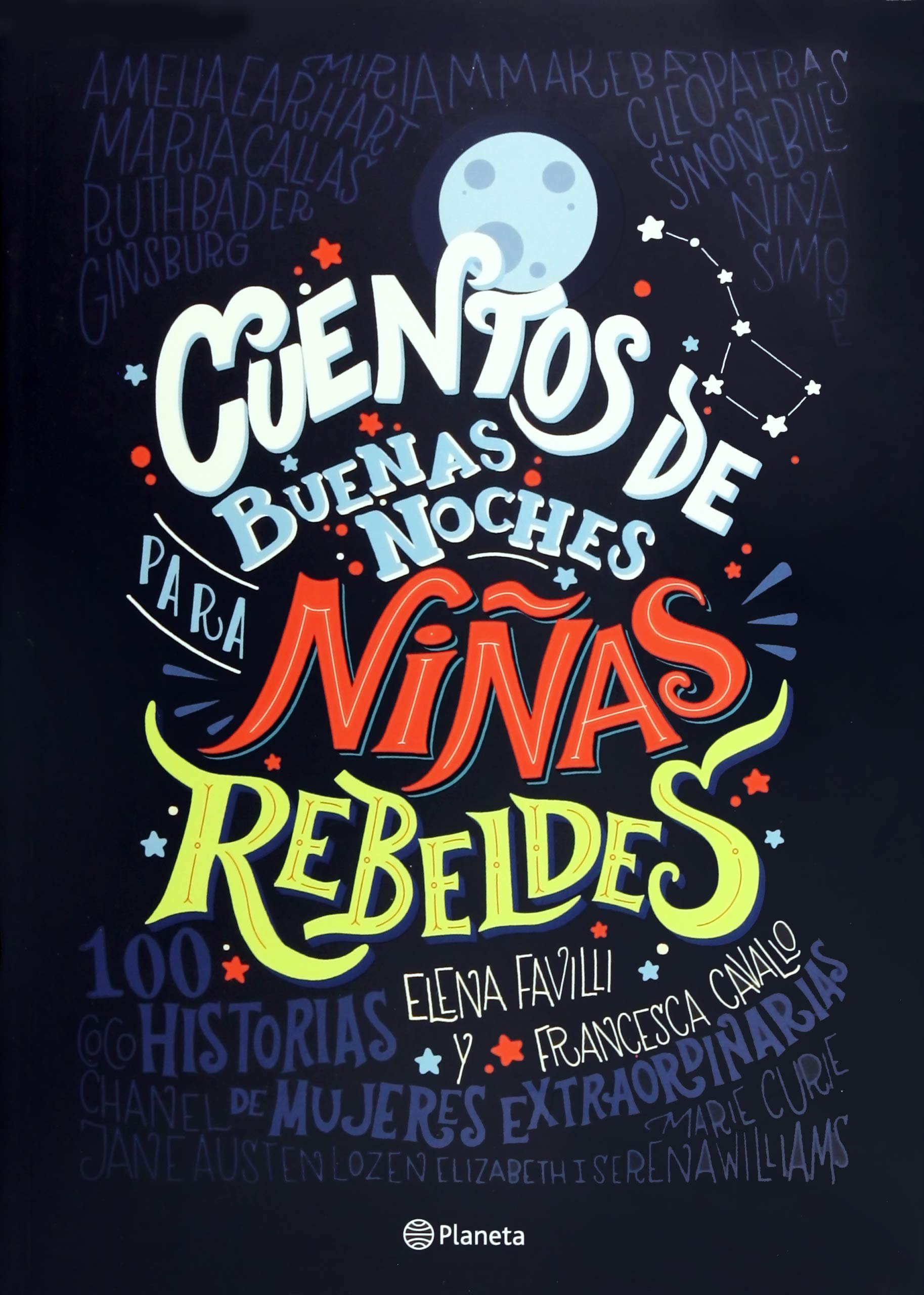 Cuentos de buenas noches para niñas rebeldes reinventa los cuentos de hadas. Elizabeth I, Coco Chanel, Marie Curie, Frida Kahlo, Serena Williams y otras mujeres extraordinarias narran la aventura de su vida, inspirando a niñas ―y no tan niñas― a soñar en grande y alcanzar sus sueños; además, cuenta con las magníficas ilustraciones de sesenta mujeres artistas de todos los rincones del planeta.