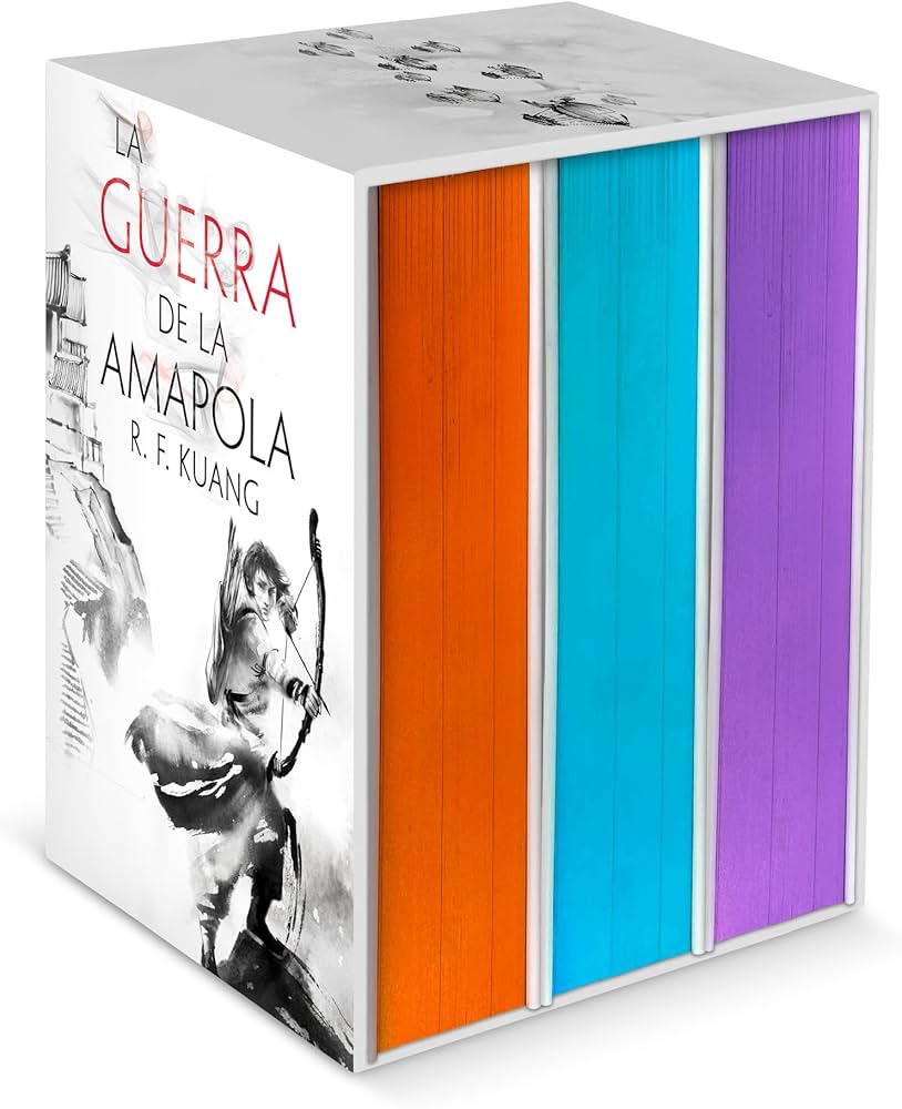 ¡La trilogía completa en un estuche de lujo que incluye los tres libros con los cantos pintados y un relato especial de la autora! La guerra de la amapola, finalista de los prestigiosos premios Hugo, Nebula y World Fantasy,es una de las mejores novelas de fantasía de la historia según la revista Time. Escrita por R. F. Kuang, la autora superventas número 1 del New York Times de Babel, la saga La guerra de la amapola ha vendido los derechos para su adaptación audiovisual a serie de televisión. INCLUYE: LA GUERRA DE LA AMAPOLA LA REPÚBLICA DEL DRAGÓN EL DIOS EN LLAMAS RELATO ESPECIAL “LA FE AHOGADA”